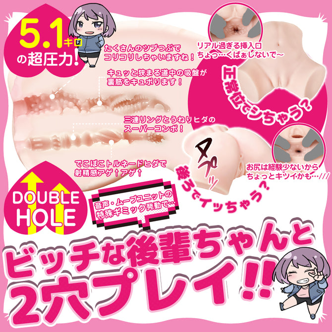 Brand: Motlab Genre: Student (Tsundere Junior) Stimulation: Vaginal + Anal Hole Design: Closed Layers: Dual-layer Usability: Reusable Firmness: Regular Penetrable Holes: 2 Weight: 5.1 kg (11.24 lb) Dimensions: